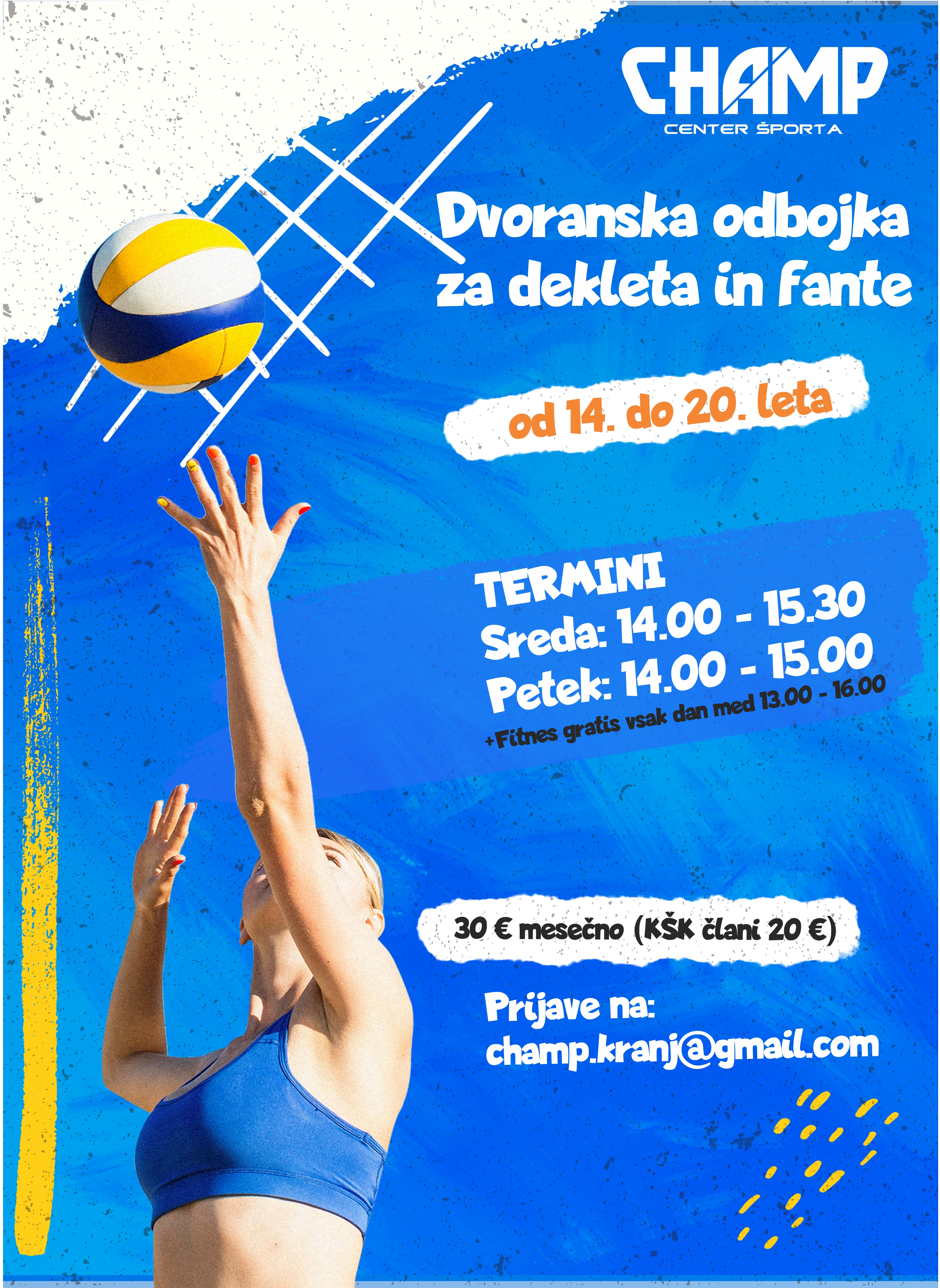 Dvoranska odbojka je namenjena vsem dijakom in študentom od 14. do 20. leta. Potekala bo 2x tedensko in sicer: